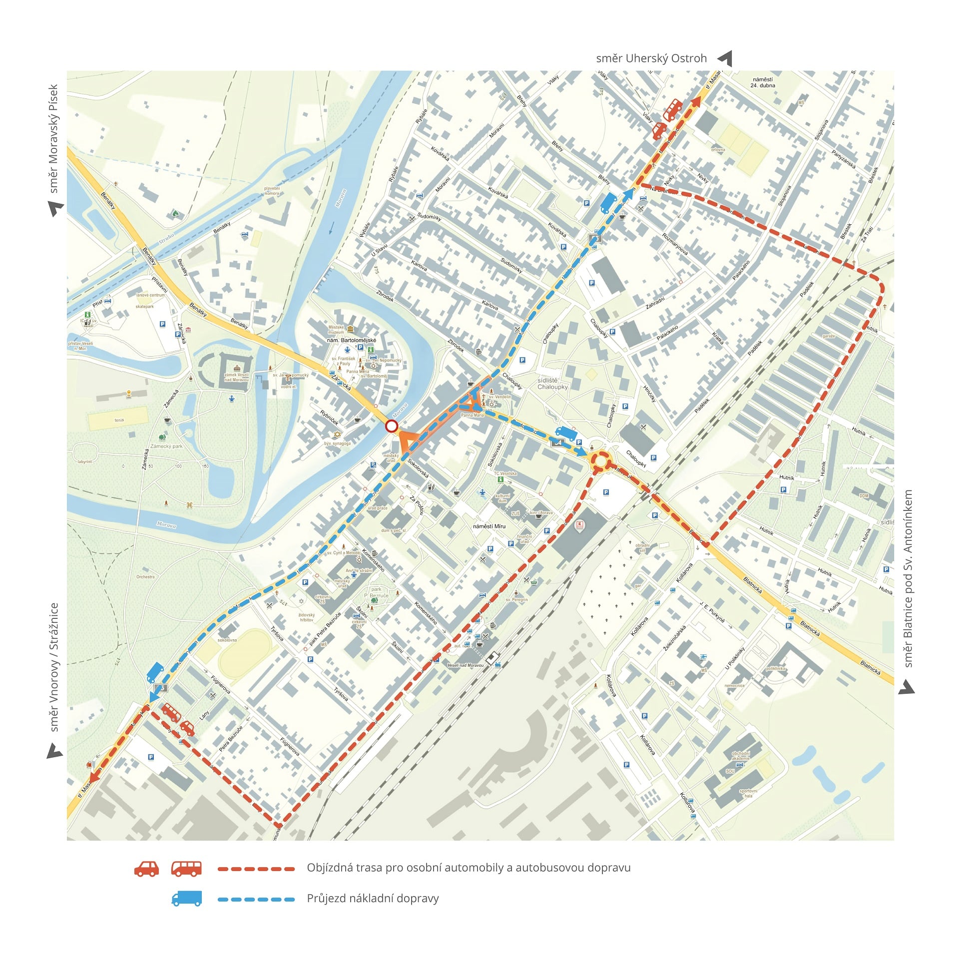této cestě vyhnuli. Osobní automobily mají vedenou objízdnou trasu (vizte příloha), po